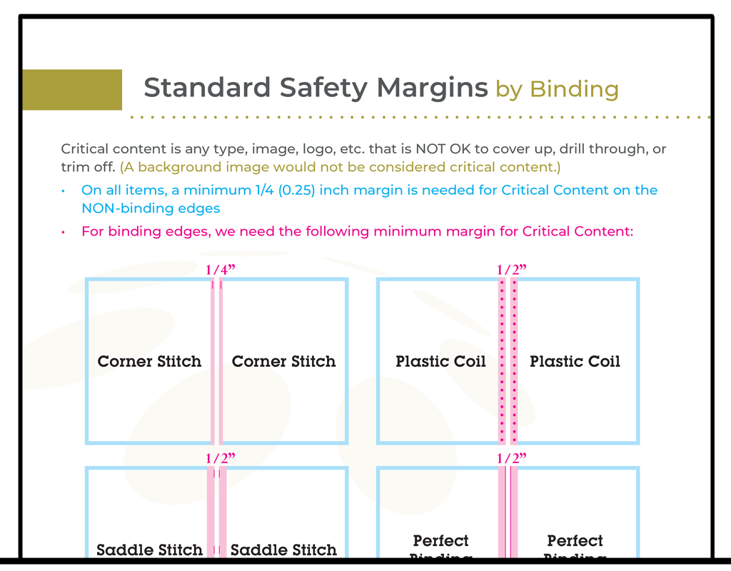 Safe-area is an area inside the trim and is important to pay attention to because this is where you should place your most important information within your design. Any content outside of this area is in risk of being cut off!