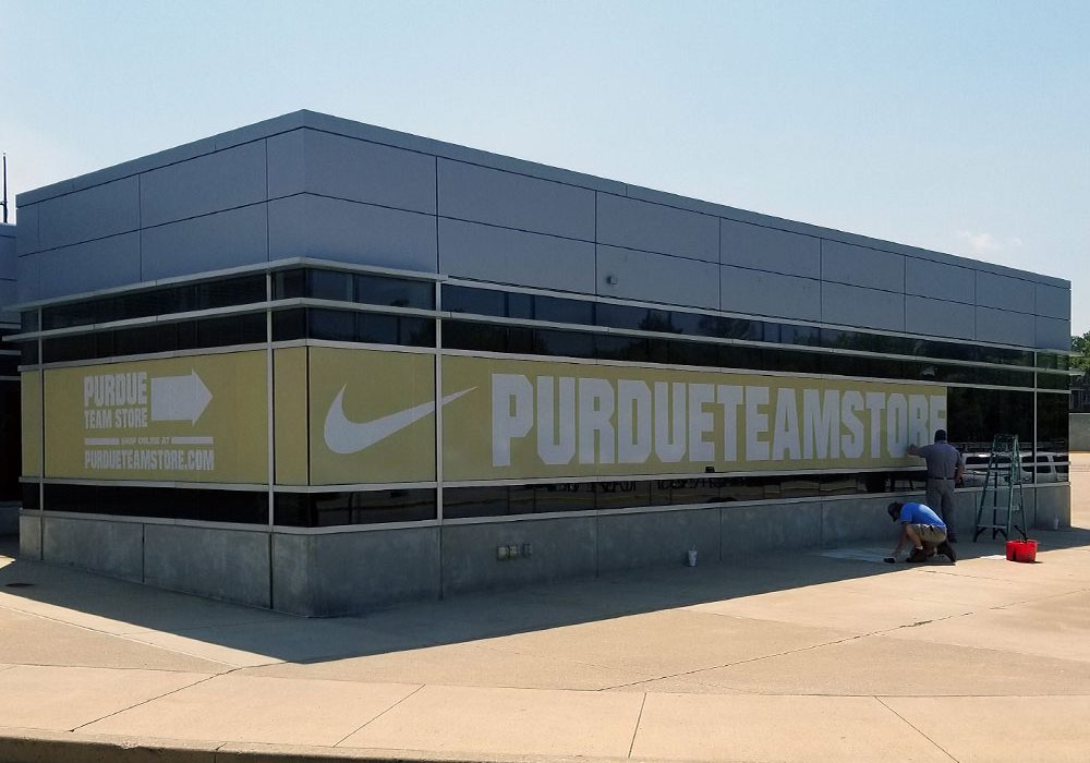 Purdue wanted to refresh their athletic campus graphics and was in search of a supplier that could design, create, and install items such as large vinyl banners, perforated or opaque vinyl window treatments, and dimensional signage.